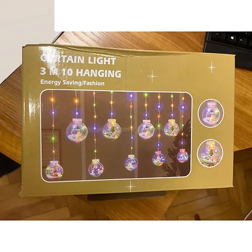 Descriere: Lanț de iluminat cu zece ornamente sferice din plastic cu bile de polistiren și decorațiuni de pin.