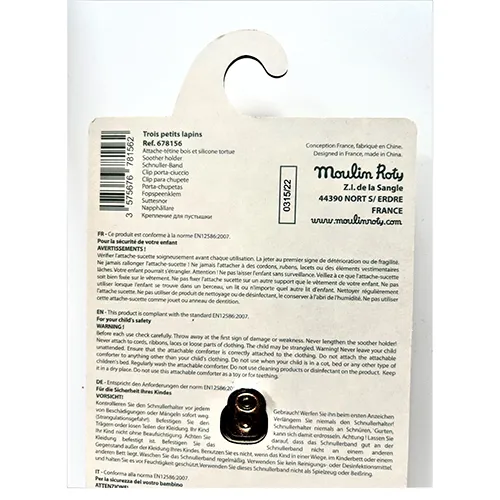 Pericol: Margelele suportului pentru suzetă nu au orificiile de ventilație necesare, iar dispozitivul de fixare a îmbrăcămintei se rupe cu ușurință. Copiii mici le pot pune în gură și se pot îneca. Produsul nu este conform cu Regulamentul privind siguranța generală a produselor și nici cu standardul european EN 12586.