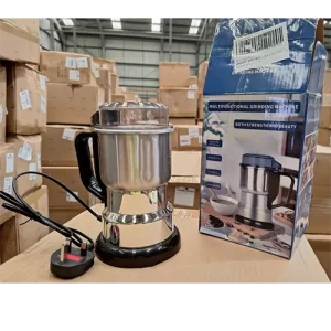 Description: A multi-functional grinding machine for pulses, beans, and legumes with attached wall plug.