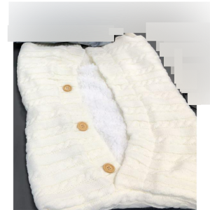 Descrierea produsului : Sac de dormit pentru copii tricotat alb cu nasturi. Produs vândut online, în special prin intermediul www.grandado.com