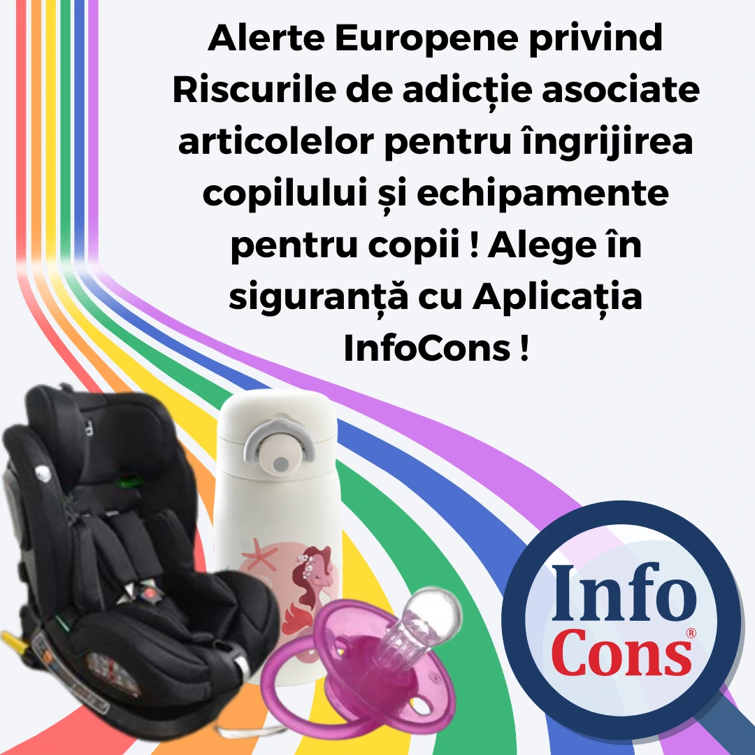 Alerte Europene privind Riscurile de adicție asociate articolelor pentru îngrijirea copilului și echipamente pentru copii ! Alege în siguranță cu Aplicația InfoCons !
