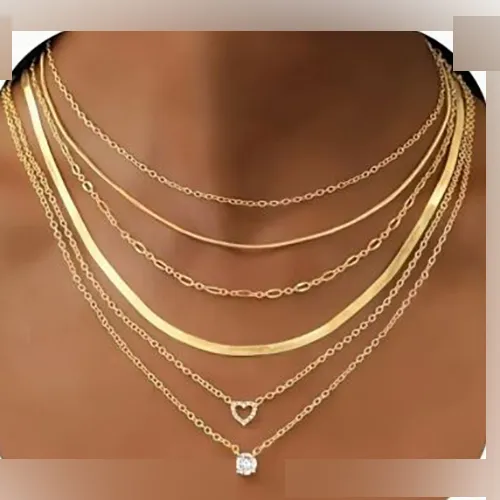 Alerta InfoCons Protectia Consumatorilor : Set de șase coliere. Un colier metalic de culoare cupru cu un farmec imitație de piatră prețioasă. Un colier din metal auriu cu un farmec de imitație de piatră prețioasă. Un lanț metalic auriu, simplu. Un lanț de legătură plat de aur. Un colier din metal auriu cu un farmec de inimă. Produs vândut online, în special prin intermediul Temu.Adăugat la: 2026-01-03