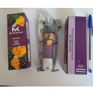Descrierea produsului : Țigară electronică de unică folosință, cu un volum de 18 ml, conținut de nicotină de 5% și lichid aromatizat