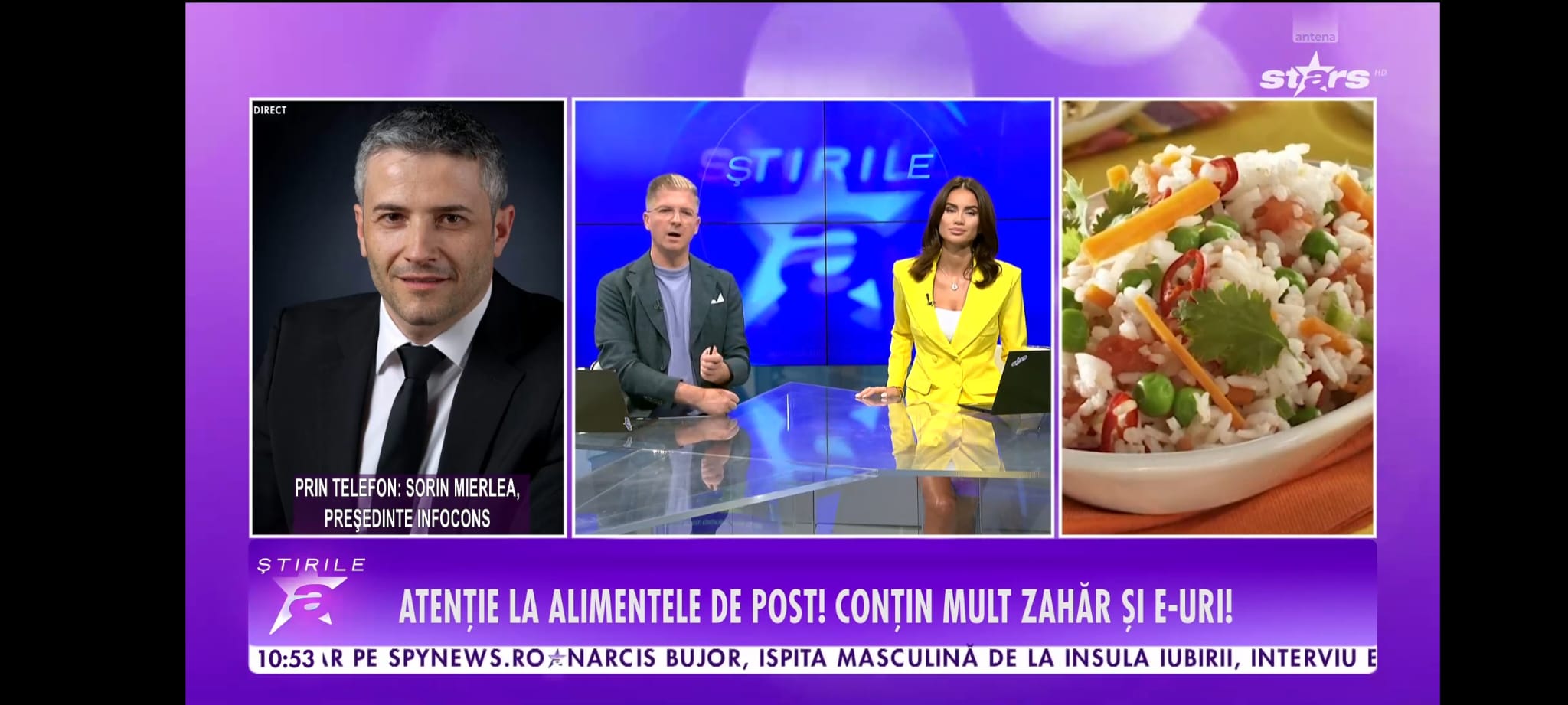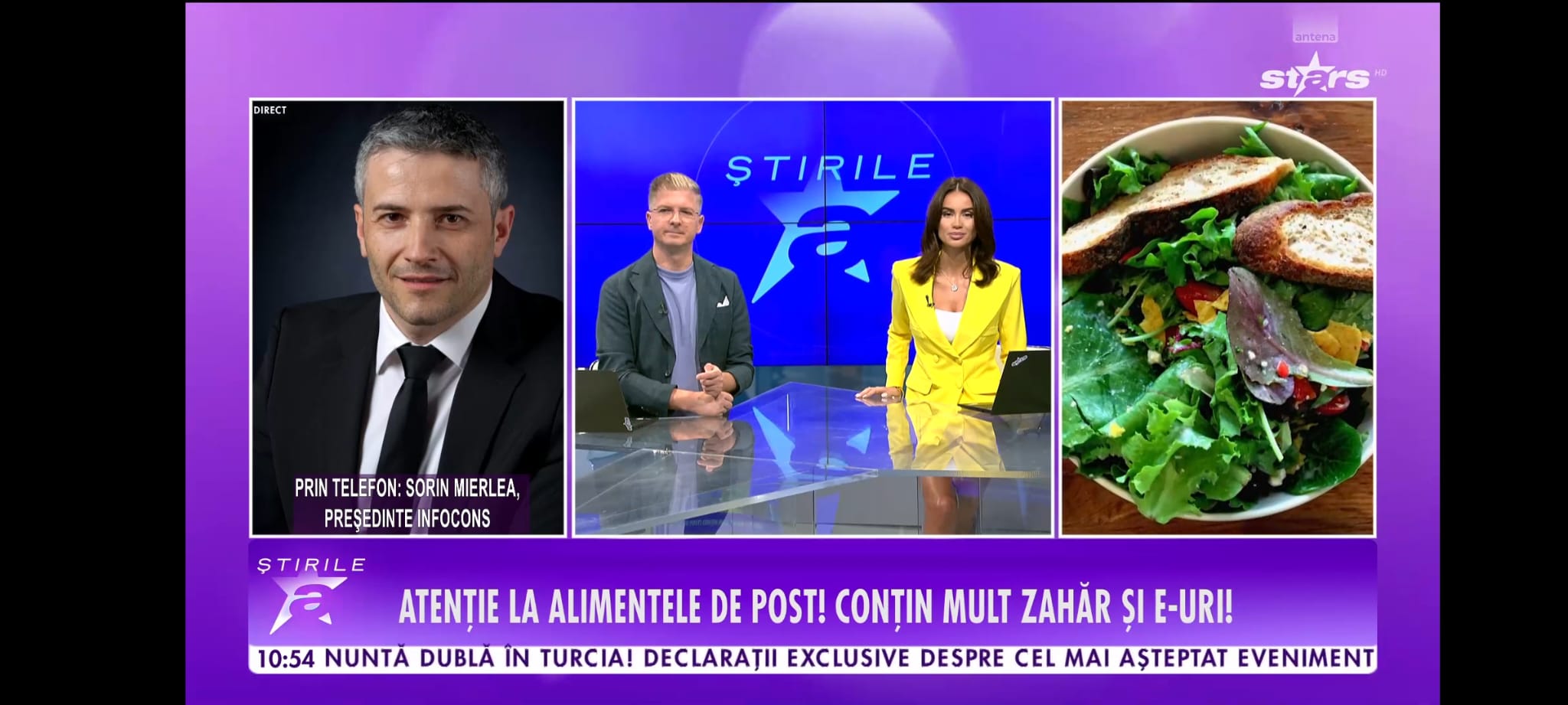 Sorin Mierlea , Președintele InfoCons Protecția Cosumatorilor în direct în cadrul Știrilor Antena Stars , vorbind despre alimentele consumate în perioada Postului Sfintei Mării , precum și despre Aplicația Gratuită InfoCons .