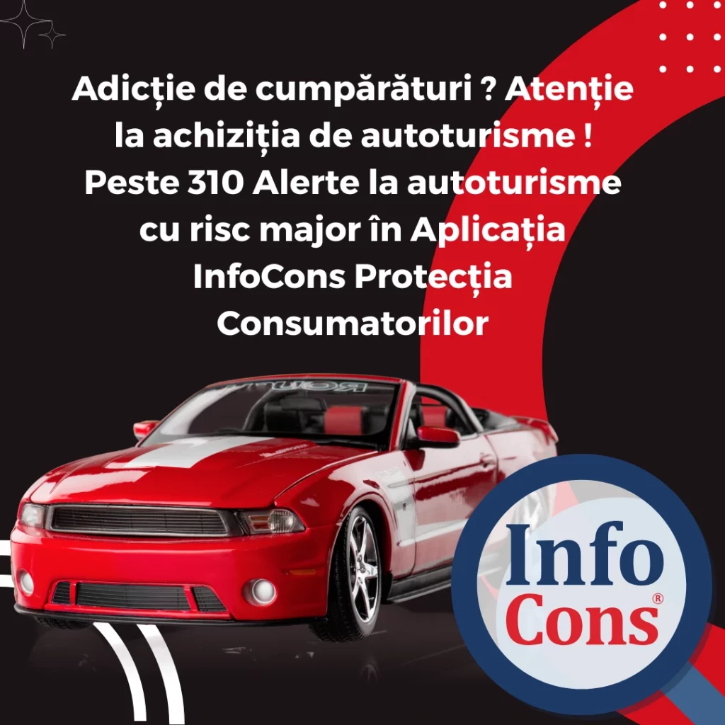 Adicție de cumpărături ? Atenție la achiziția de autoturisme ! Peste 310 Alerte la autoturisme cu risc major în Aplicația InfoCons Protecția ConsumatorilorAdăugat la: 2026-01-26