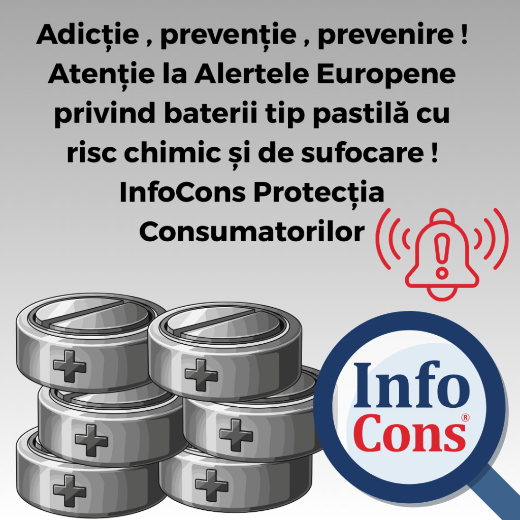 Adicție , prevenție , prevenire ! Atenție la Alertele Europene privind baterii tip pastilă cu risc chimic și de sufocare ! InfoCons Protecția ConsumatorilorAdăugat la: 2026-01-27
