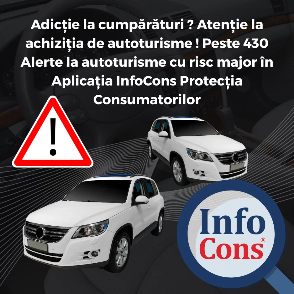 Adicție la cumpărături ? Atenție la achiziția de autoturisme ! Peste 430 Alerte la autoturisme cu risc major în Aplicația InfoCons Protecția ConsumatorilorAdăugat la: 2026-03-30