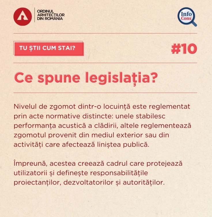 InfoCons protecția consumatorilor și Ordinul Arhitecților din România te informează : Ce spune legislația cu privire la nivelul de zgomot dintr-o locuință ?Adăugat la: 2026-03-27