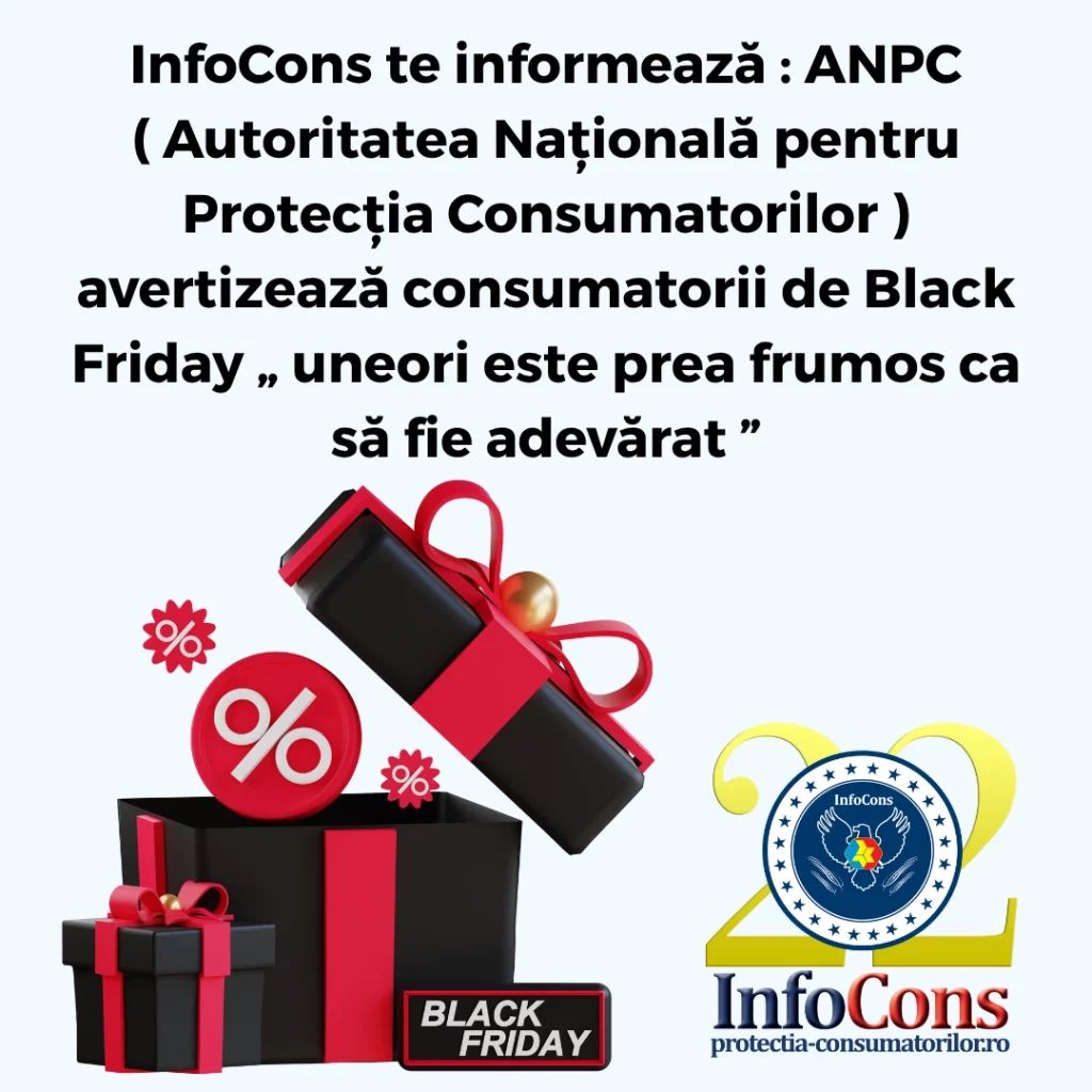 InfoCons te informează : ANPC ( Autoritatea Națională pentru Protecția Consumatorilor ) avertizează consumatorii de Black Friday „uneori este prea frumos ca să fie adevărat”Adăugat la: 2025-10-23