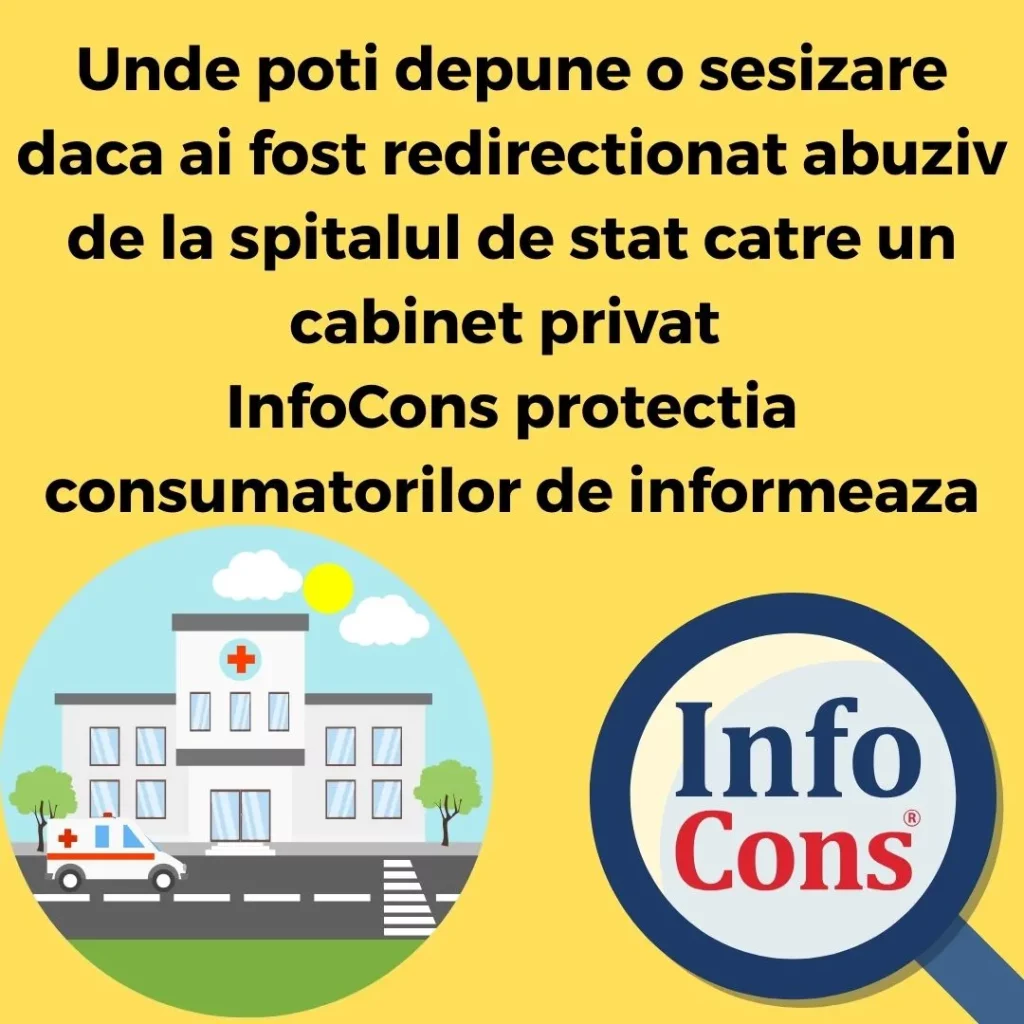 Unde poti depune o sesizare daca ai fost redirectionat abuziv de la spitalul de stat catre un cabinet privat- InfoCons protectia consumatorilor de informeazaAdăugat la: 2025-09-03