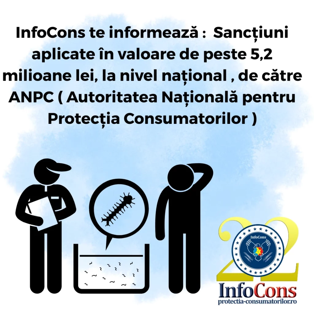 InfoCons te informează : Sancțiuni aplicate în valoare de peste 5,2 milioane lei, la nivel național , de către ANPC ( Autoritatea Națională pentru Protecția Consumatorilor )Adăugat la: 2025-08-30