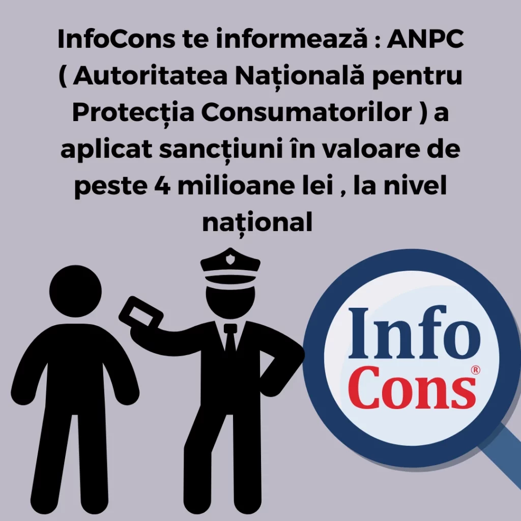 InfoCons te informează : ANPC ( Autoritatea Națională pentru Protecția Consumatorilor ) a aplicat sancțiuni în valoare de peste 4 milioane lei , la nivel naționalAdăugat la: 2025-08-28
