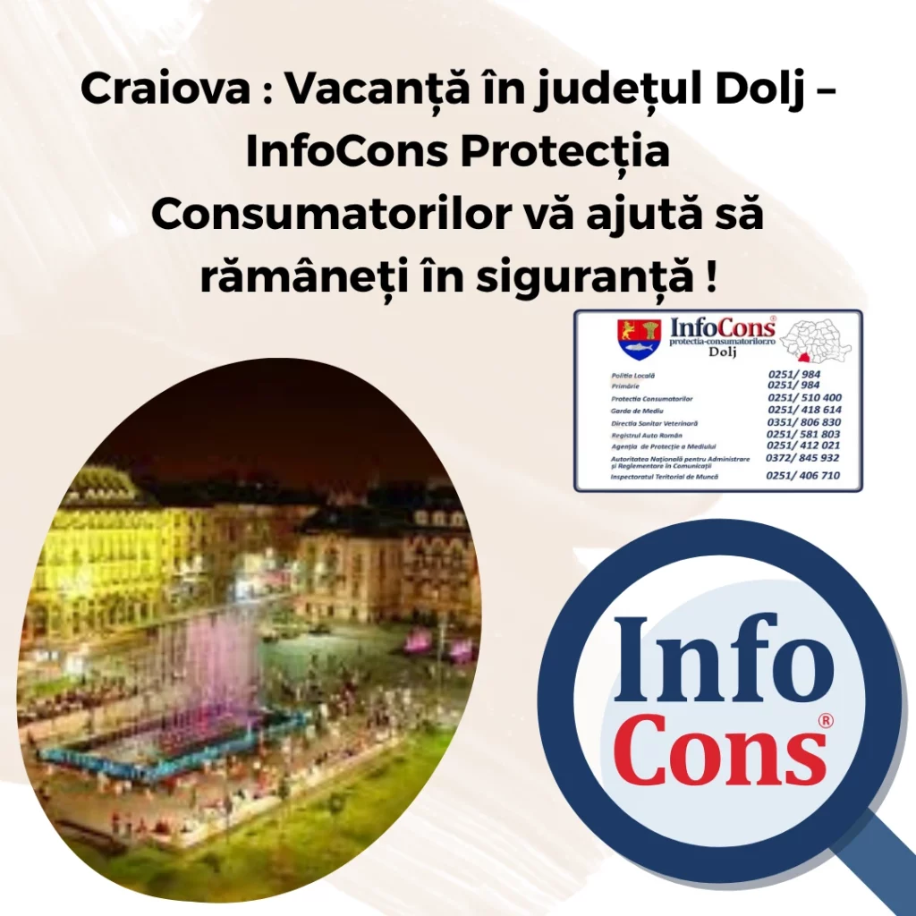 Craiova : Vacanță în județul Dolj – InfoCons Protecția Consumatorilor vă ajută să rămâneți în siguranță !Adăugat la: 2025-07-08