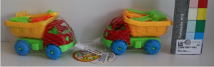 Descrierea produsului : Set de jucării de plajă din plastic, care conține un camion, o lopată, o greblă și forme de nisip