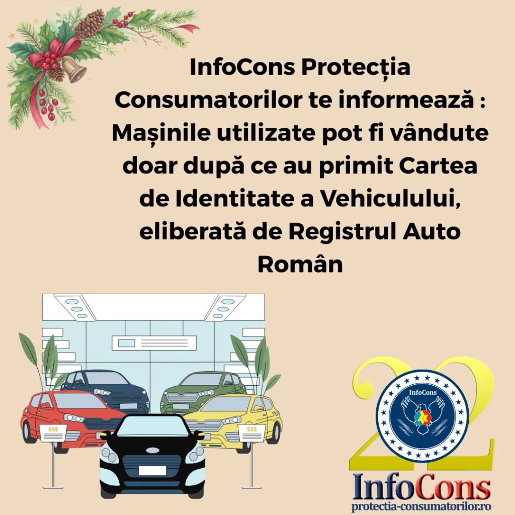 InfoCons Protecția Consumatorilor te informează : Mașinile utilizate pot fi vândute doar după ce au primit Cartea de Identitate a Vehiculului, eliberată de Registrul Auto Român