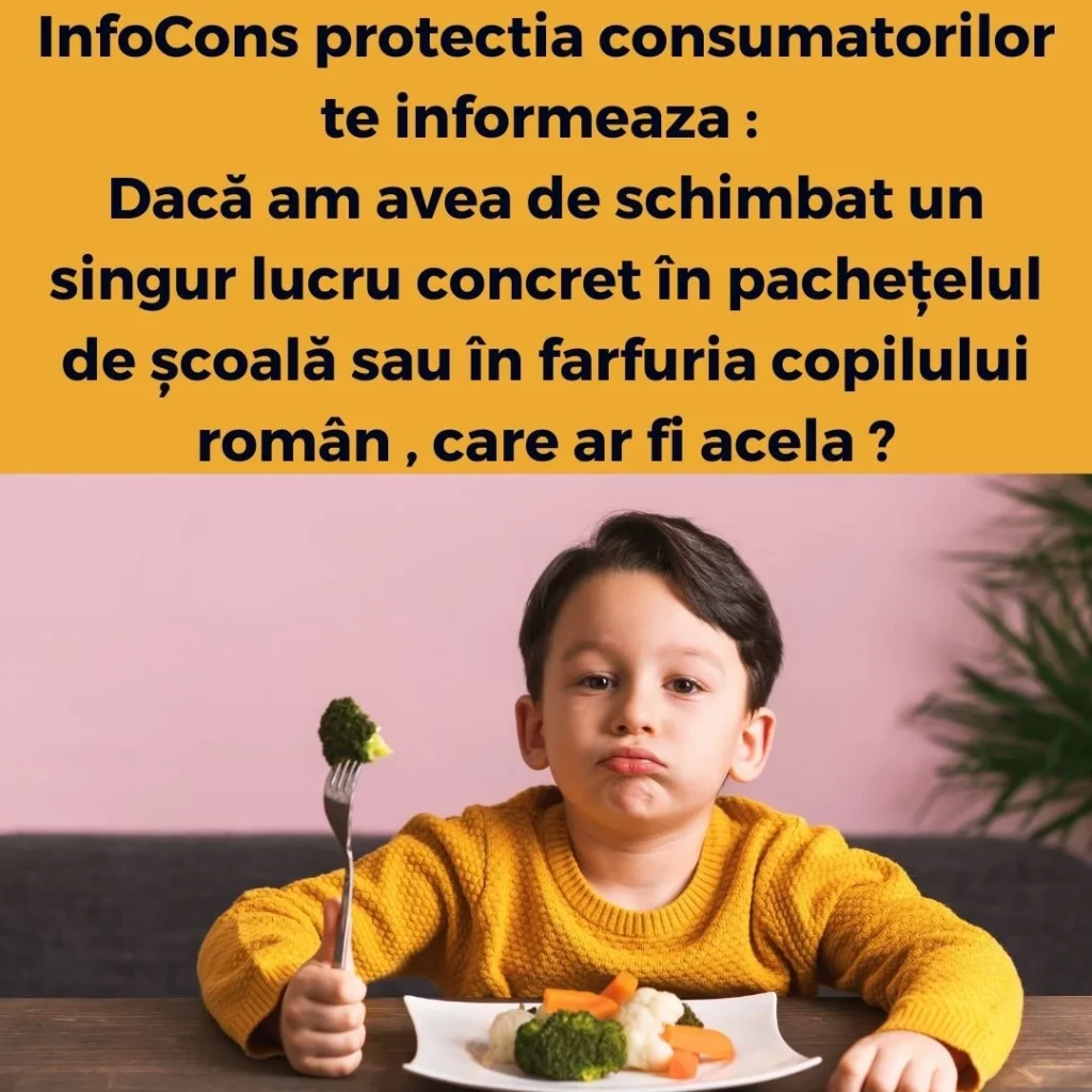InfoCons protectia consumatorilor te informeaza : Dacă am avea de schimbat un singur lucru concret în pachețelul de școală sau în farfuria copilului român, care ar fi acela ?