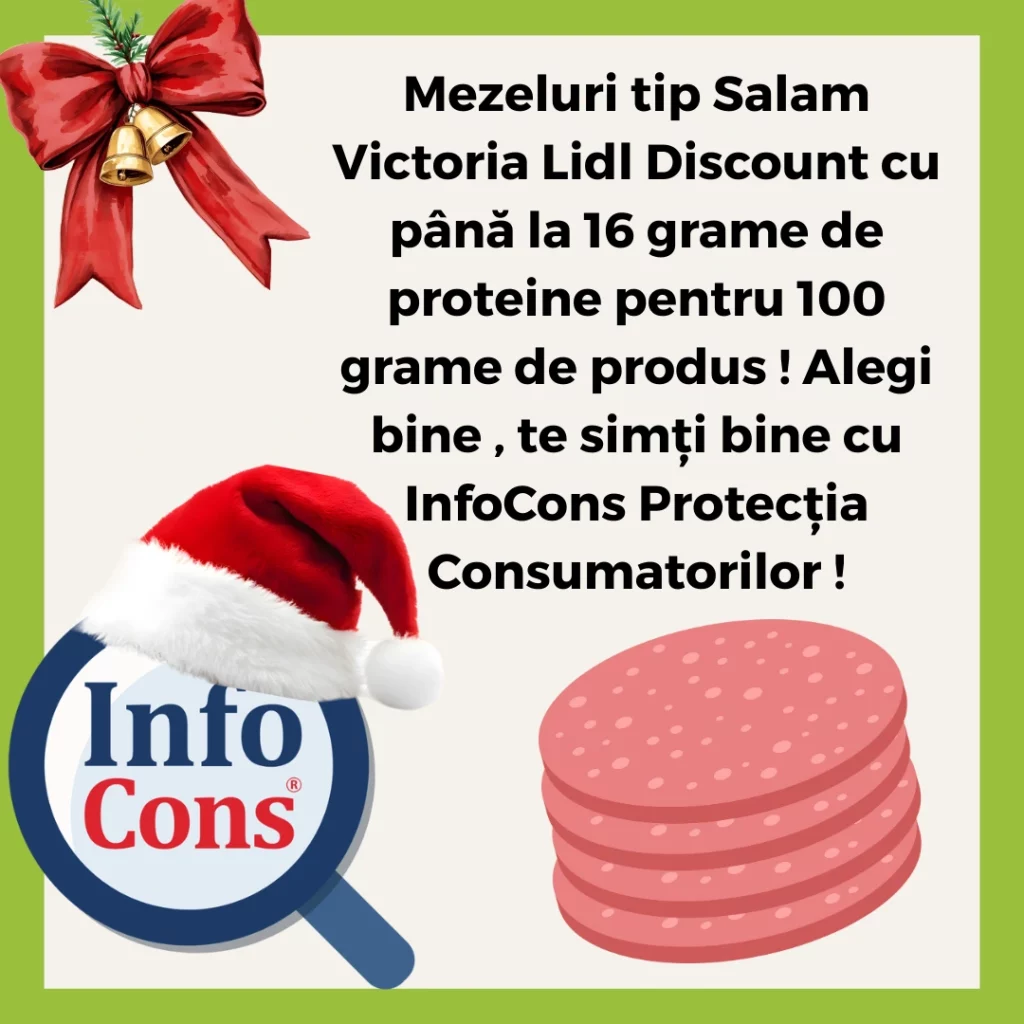 Mezeluri tip Salam Victoria Lidl Discount cu până la 16 grame de proteine pentru 100 grame de produs ! Alegi bine , te simți bine cu InfoCons Protecția Consumatorilor !