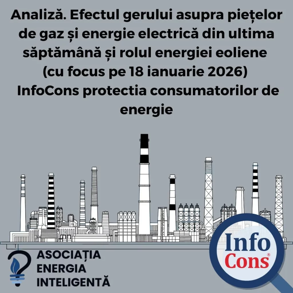 Analiză. Efectul gerului asupra piețelor de gaz și energie electrică din ultima săptămână și rolul energiei eoliene (cu focus pe 18 ianuarie 2026) – InfoCons protectia consumatorilor de energie