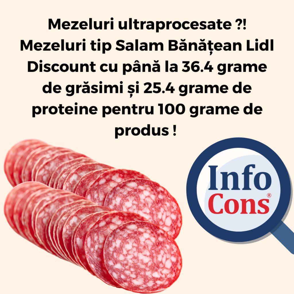 Mezeluri ultraprocesate ?! Mezeluri tip Salam Bănățean Lidl Discount cu până la 36.4 grame de grăsimi și 25.4 grame de proteine pentru 100 grame de produs !