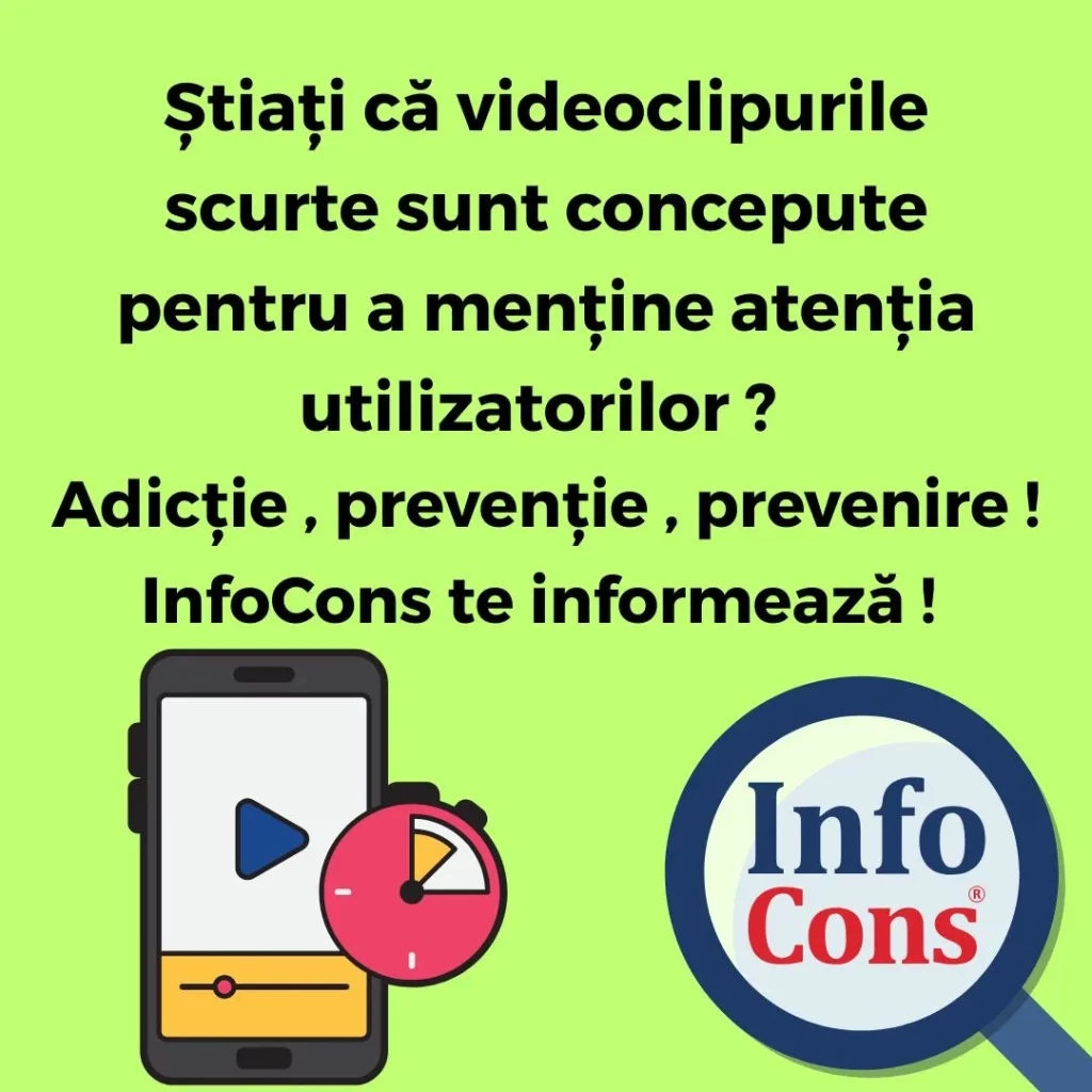 Știați că videoclipurile scurte sunt concepute pentru a menține atenția utilizatorilor ? Adicție , prevenție , prevenire ! InfoCons te informează !