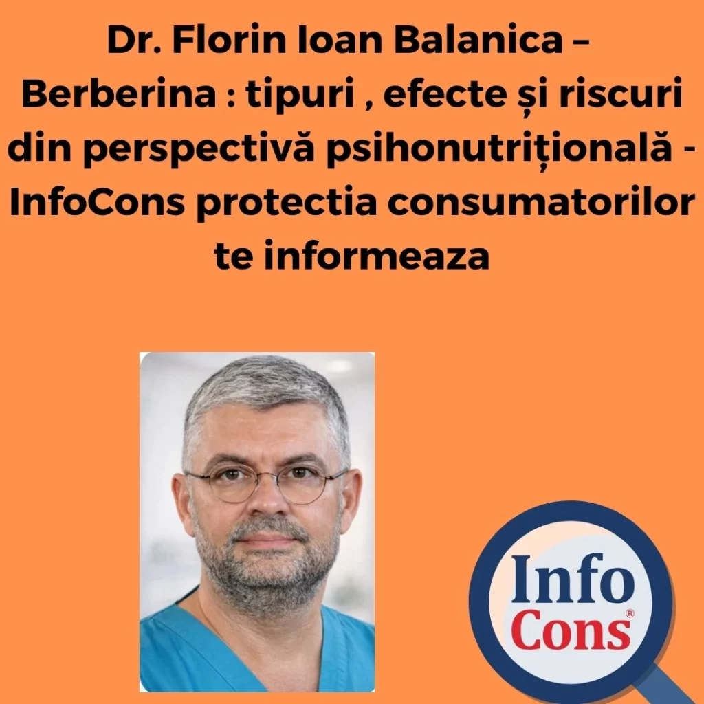 Dr. Florin Ioan Balanica – Berberina : tipuri , efecte și riscuri din perspectivă psihonutrițională – InfoCons protectia consumatorilor te informeaza