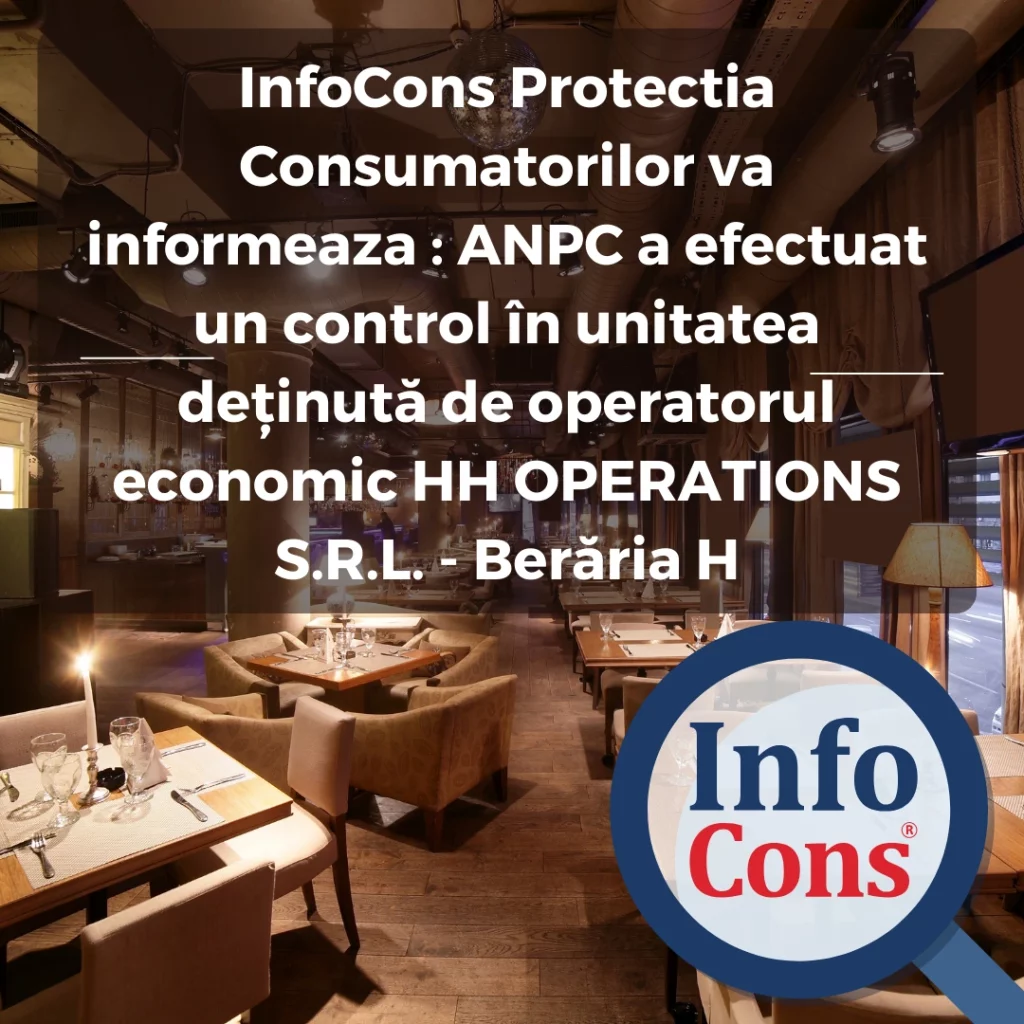 InfoCons Protectia Consumatorilor va informeaza : ANPC a efectuat un control în unitatea deținută de operatorul economic HH OPERATIONS S.R.L. – Berăria H