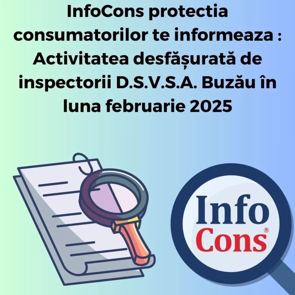 InfoCons protectia consumatorilor te informeaza : Activitatea desfășurată de inspectorii D.S.V.S.A. Buzău în luna februarie 2025