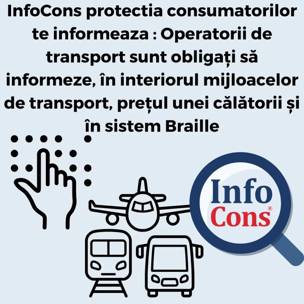 InfoCons protectia consumatorilor te informeaza : Operatorii de transport sunt obligați să informeze, în interiorul mijloacelor de transport, prețul unei călătorii și în sistem Braille