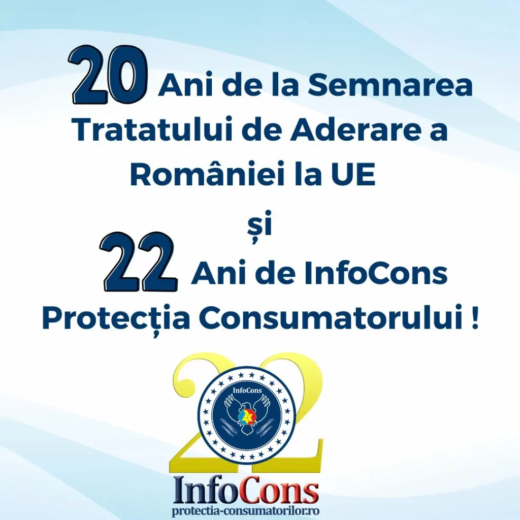 20 Ani de la Semnarea Tratatului de Aderare a României la UE și 22 Ani de InfoCons Protecția Consumatorului !