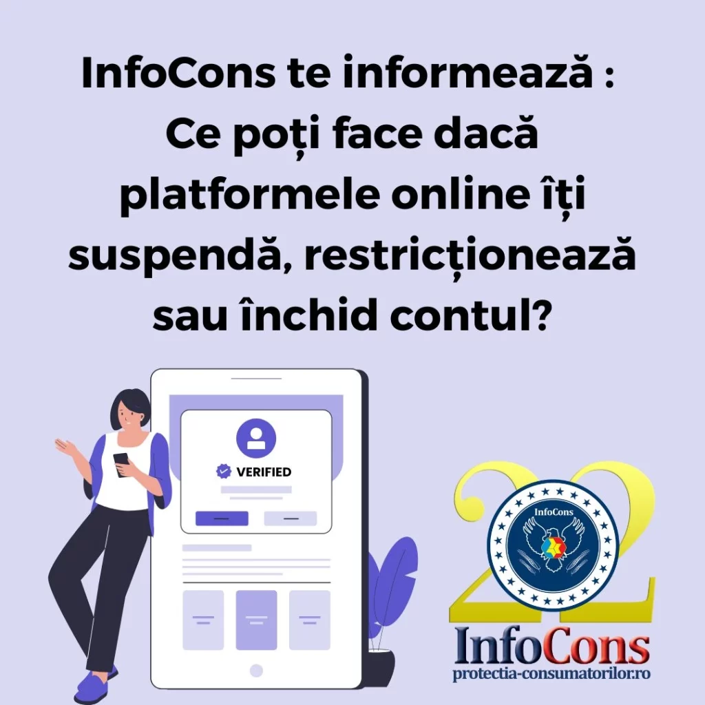 InfoCons Protecția Consumatorului te informează : Ce poți face dacă platformele online îți suspendă , restricționează sau închid contul ?