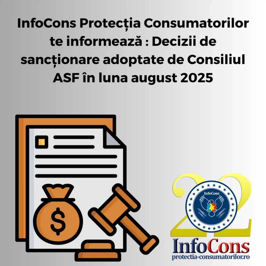 InfoCons Protecția Consumatorilor te informează : Decizii de sancționare adoptate de Consiliul ASF în luna august 2025