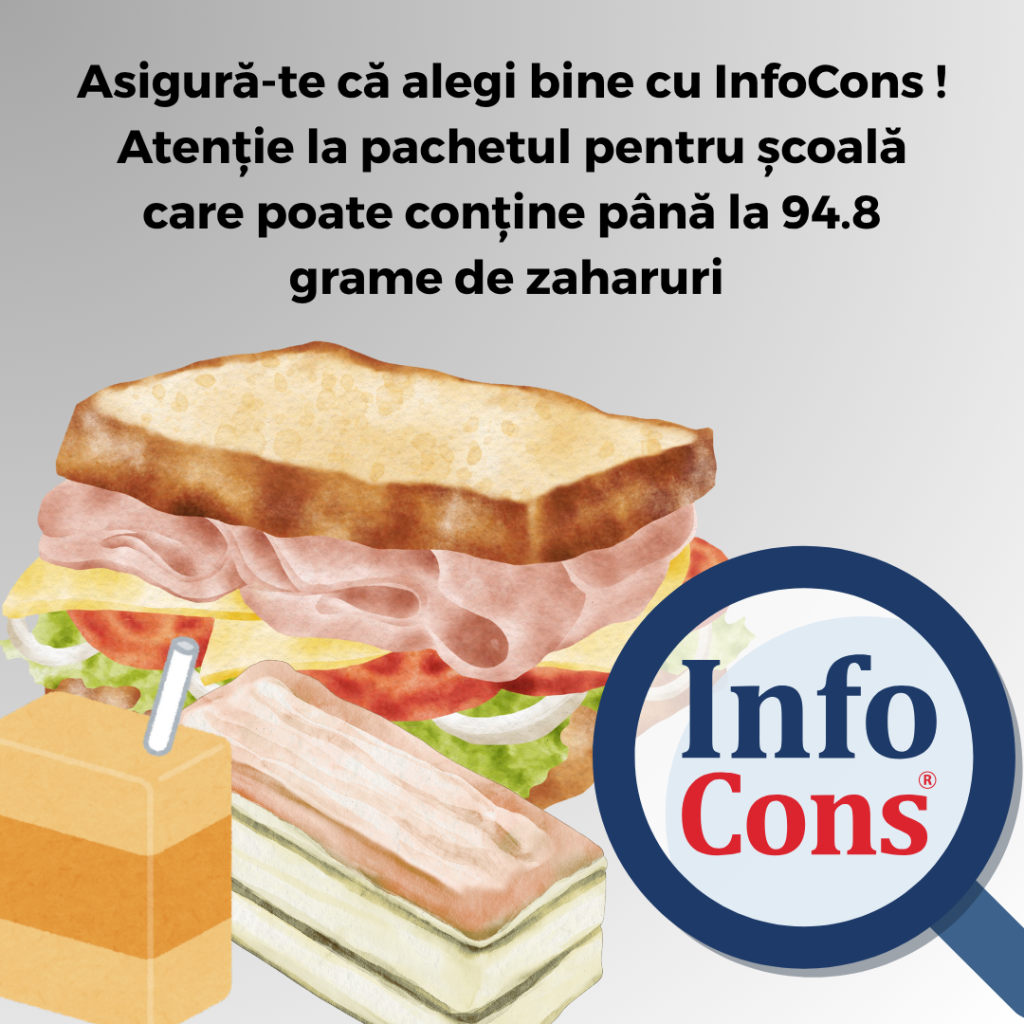 Asigură-te că alegi bine cu InfoCons ! Atenție la pachetul pentru școală care poate conține până la 94.8 grame de zaharuri