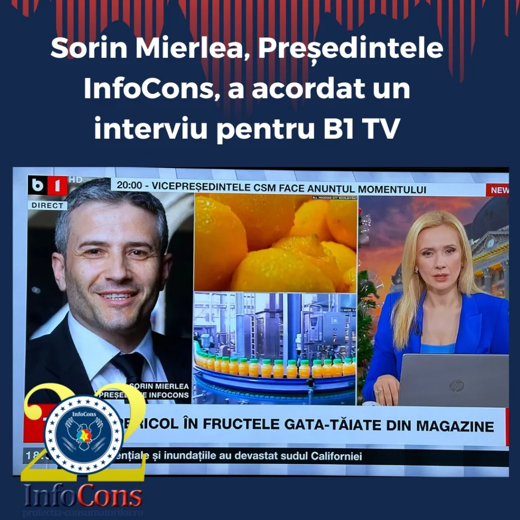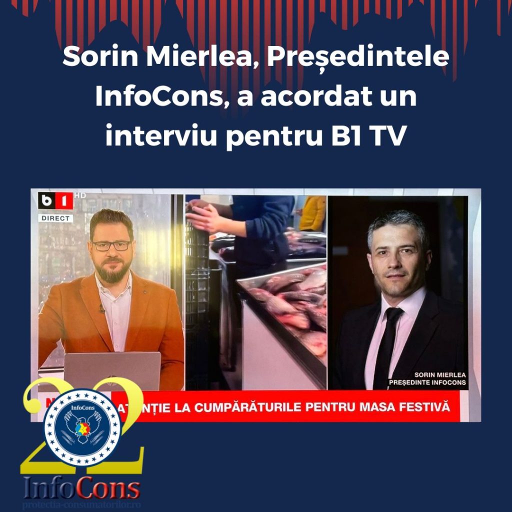Sorin Mierlea , Președintele InfoCons Protecția Consumatorilor , a acordat un interviu pentru B1 TV despre produse neconforme în perioada Crăciunului în Aplicația InfoCons