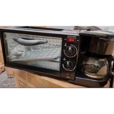Alerta InfoCons Protectia Consumatorilor : Aparat trei-în-unu cu un percolator de cafea, un cuptor mini și o plită pentru prăjit.