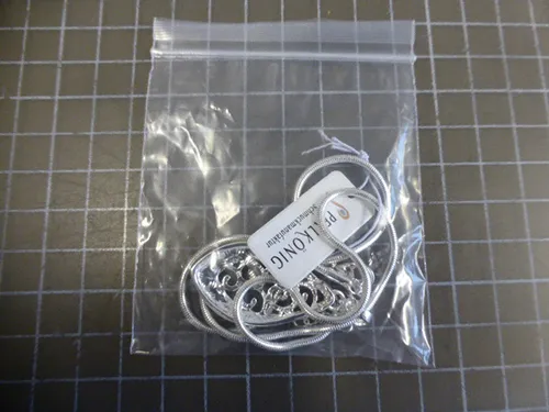Alerta InfoCons Protectia Consumatorilor : Colier metalic argintiu cu pandantive metalice argintii, negre și aurii, închidere și prelungitor de lanț.
