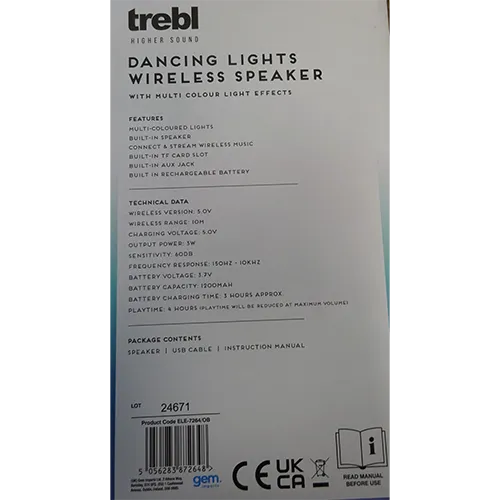 Alerta InfoCons Protectia Consumatorilor : Difuzor wireless cu lumini. Produs vândut online, în special prin intermediul eurogiant.ie.