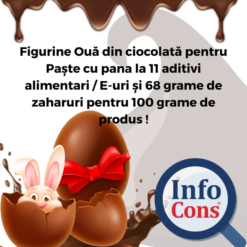 Figurine Ouă din ciocolată pentru Paște cu pana la 11 aditivi alimentari / E-uri și 68 grame de zaharuri pentru 100 grame de produs !