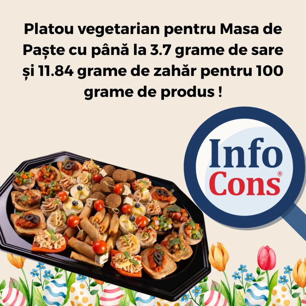 Platou vegetarian pentru Masa de Paște cu până la 3.7 grame de sare și 11.84 grame de zahăr pentru 100 grame de produs !