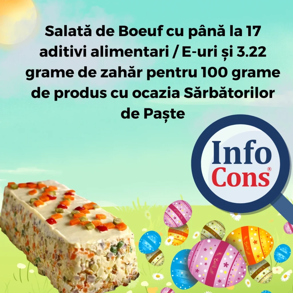Salată de Boeuf cu până la 17 aditivi alimentari / E-uri și 3.22 grame de zahăr pentru 100 grame de produs cu ocazia Sărbătorilor de Paște