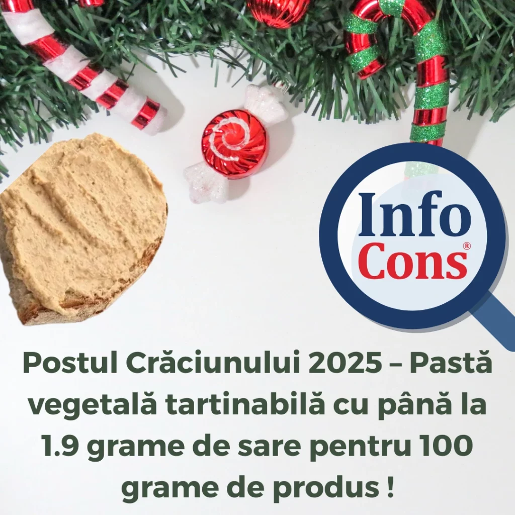 Postul Crăciunului 2025 – Pasta vegetală tartinabilă cu până la 1.9 grame de sare pentru 100 grame de produs !