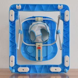Descrierea produsului: Plimbare pliabilă albastră pentru bebeluși, cu scaun reglabil pe înălțime, consolă de jocuri muzicale și cu jucării pe tavă