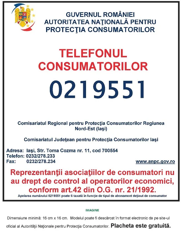 Telefon Protecția Consumatorilor Olt : 021 9551