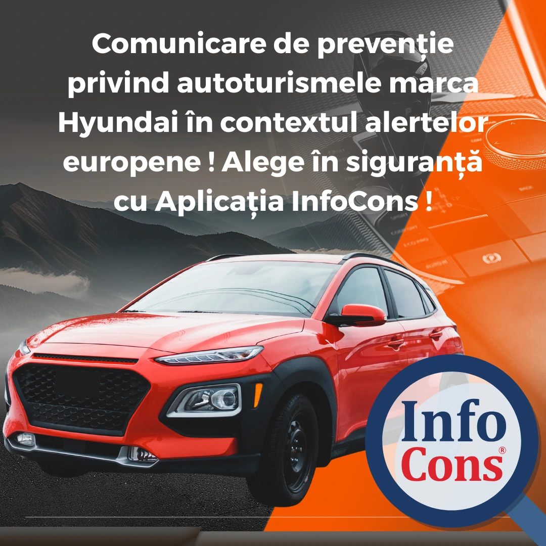 Comunicare de prevenție privind autoturismele marca Hyundai în contextul alertelor europene ! Alege în siguranță cu Aplicația InfoCons !