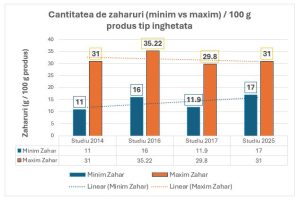 Cantitatea de zaharuri minima continuta in produsele tip inghetata urmeaza o tendinta de crestere in ultimii 11 ani .