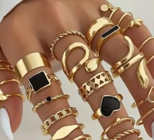 Descrierea produsului : Set de 27 de inele, promovate ca vintage. Produs vândut online, în special prin intermediul Temu