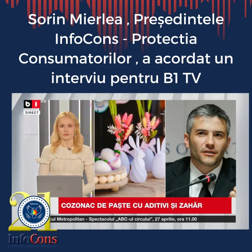 Sorin Mierlea , Președintele InfoCons Protecția Consumatorului , a acordat un interviu pentru B1 TV despre aditivii alimentari / E-uri din mezeluri și Aplicația InfoConsAdăugat la: 2025-10-25