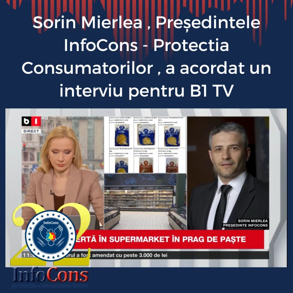 Sorin Mierlea , Președintele InfoCons Protecția Consumatorilor , a acordat un interviu pentru B1 TV despre produsele mărcii propriiAdăugat la: 2025-11-17
