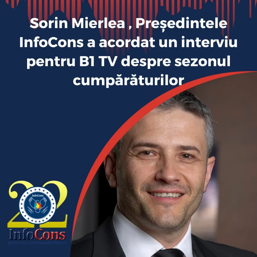 Sorin Mierlea , Președintele InfoCons Protecția Consumatorilor , a acordat un interviu pentru B1 TV despre sezonul cumpărăturilorAdăugat la: 2025-12-20
