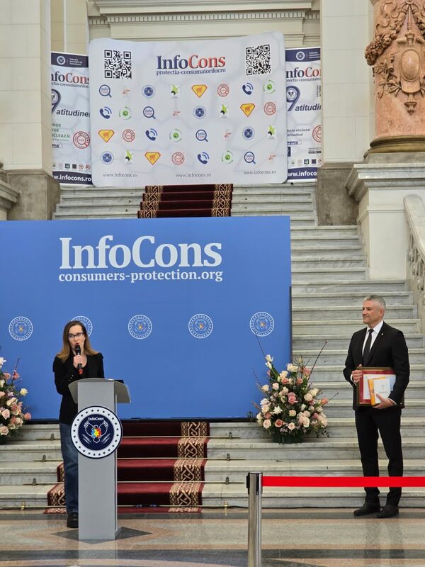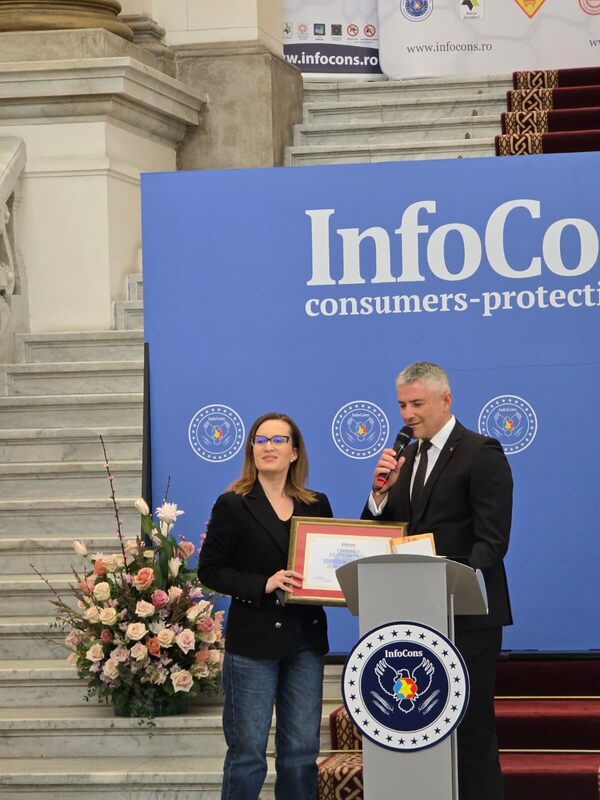 Decernarea Diplomei de Încredere acordată B1 TV , în cadrul evenimentului dedicat Zilei Mondiale a Drepturilor Consumatorilor și Zilei Mondiale a Proprietății Intelectuale, organizat de InfoCons în data de 13 martie 2026, la Palatul de Justiție București.