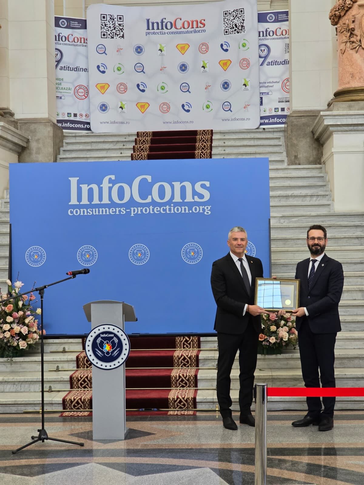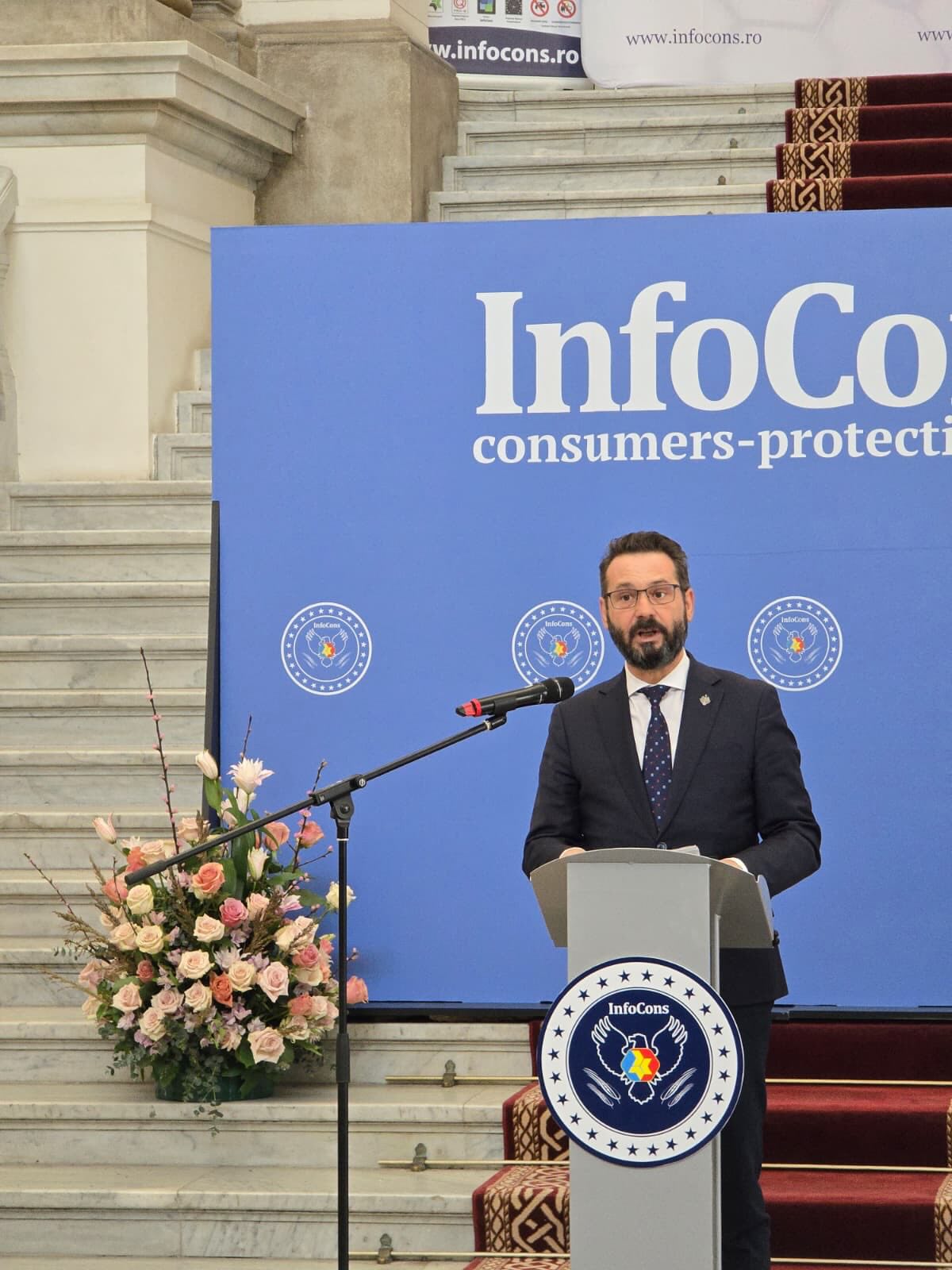 Decernarea Diplomei de Încredere acordată domnului Mircea Abrudean , Președinte al Senatului României și acceptată de domnul Mihai Coteț, Vicepreședinte al Senatului României, în cadrul evenimentului dedicat Zilei Mondiale a Drepturilor Consumatorilor și Zilei Mondiale a Proprietății Intelectuale, organizat de InfoCons ieri ,  13 martie 2026,  la Palatul de Justiție București.